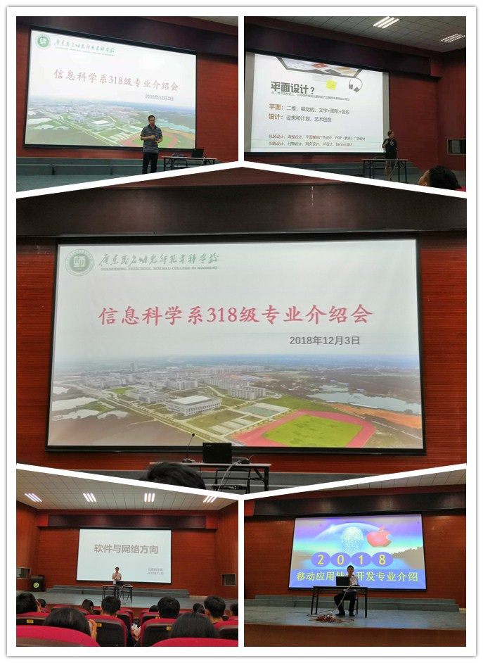 我系指导老师从软件与网络方向、设计师的成长之路、移动应用开发技术三个方面进行了介绍。他们都分别从专业定位、培养要求、课程配置及就业方向四个方面进行了详细地阐述。新生们在此期间始终保持着高度的专注,认真地听着相关专业知识,并做了详细的记录。最后,各指导老师还现场就同学的疑问及时地进行了解答,大会最终取得圆满成功。