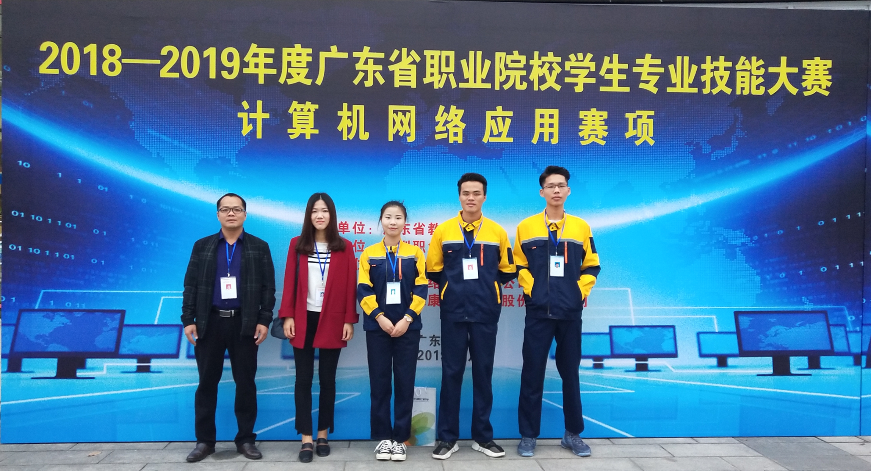 1月13日,由广东省教育厅主办的2018―2019年度广东省高等职业院校技能大赛“计算机网络应用”赛项在深圳职业技术学院举行。本次大赛由省内53支高职院校代表队同台竞技,我校是唯一的师范院校代表队,由信息科学系黄以宝主任、杨春丽老师指导的317级计算机网络技术专业的朱志强、刘志文、何梅瑛组成的代表队参加比赛。经过3个小时激烈角逐,我校代表队获得二等奖的好成绩。