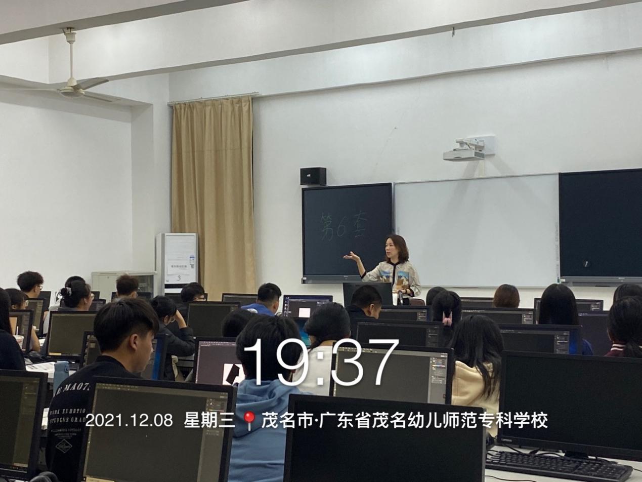 2021年12月8日(星期三)晚上第一节18:30-19:15,平面设计教研组在茂名校区实训楼A422教室进行了公开课听课,公开课授课教师是周俏,课题是《图形图像综合处理》,授课对象是321计算机应用2班。