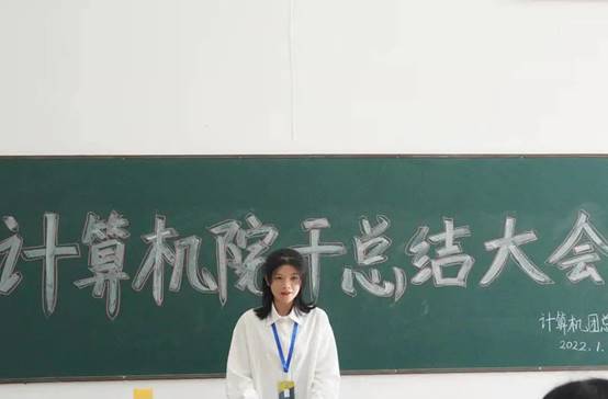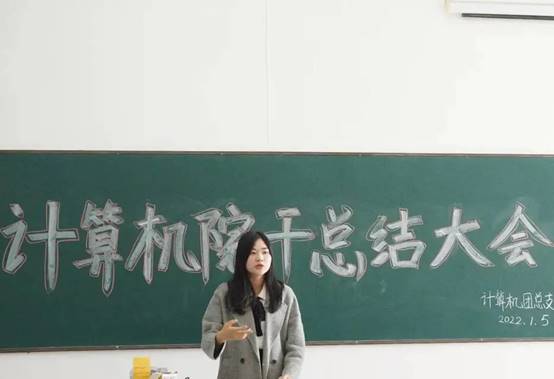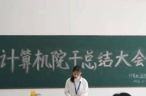 及时总结过去,未来的前行之路方能更有底气,为了更好推进计算机学院团总支、学生会的全面发展,2022年1月5日中午,我院在实训楼205举行了计算机学院院干总结大会。此次大会由学生会主席谭新芳主持,辅导员招雅丽、张燕、李艳云以及团总支学生会的全体成员出席。