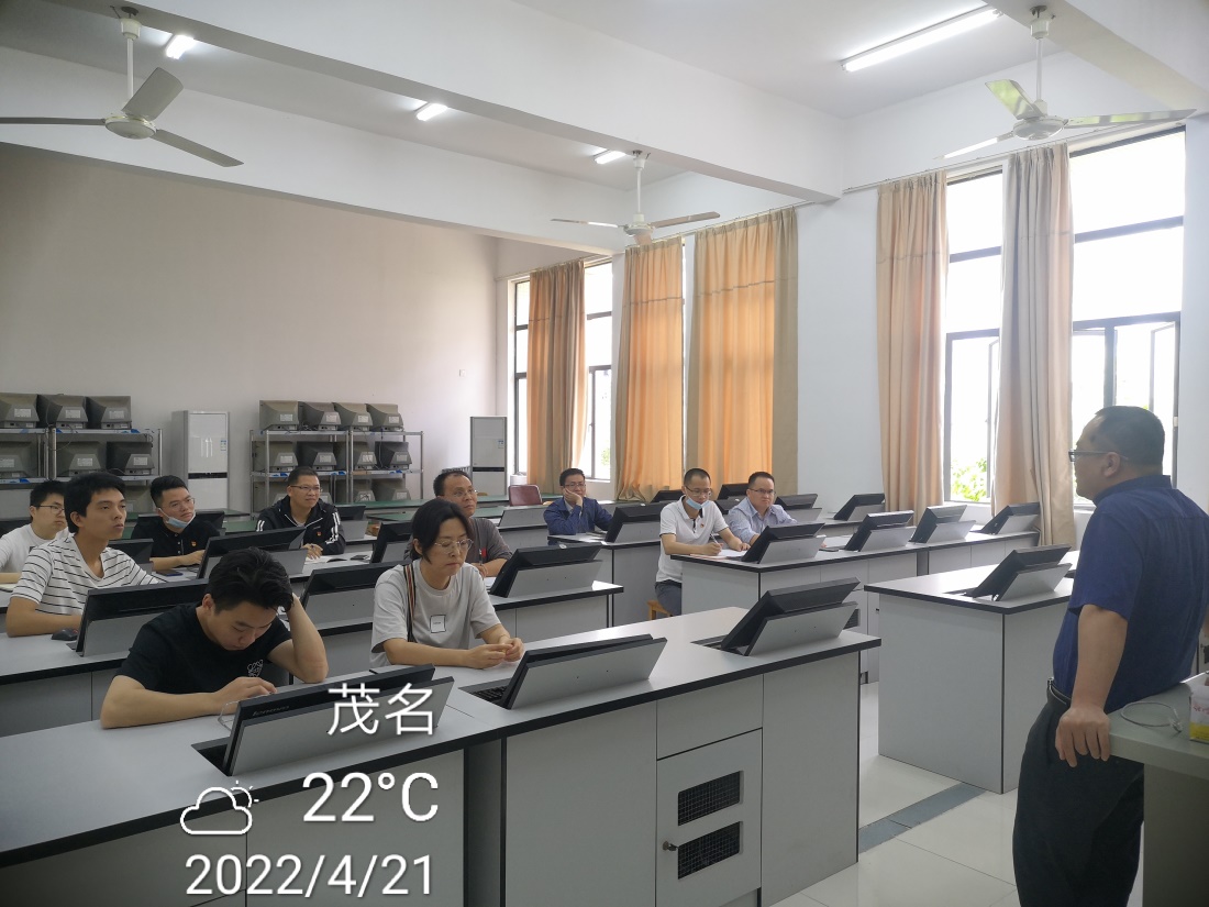 2022年4月21日下午16:05至18:00,计算机应用教研组在茂名校区计算机学院办公室隔壁的实训室开展本学期第2次教研活动,由黄以宝院长主持。本次教研组主要内容如下: