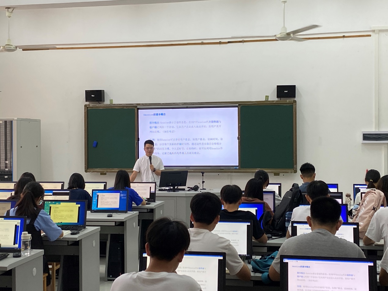 首先,杨皓老师讲授的内容为“Cookie和Session”,杨老师通过海底捞的排号机制来引入知识点,再通过实例化的形式介绍session的概念和工作原理,然后利用案例实战来演示创建session会话步骤,最后再通过练习来巩固学习,整节课课堂气氛活跃,学生的学习氛围浓厚。