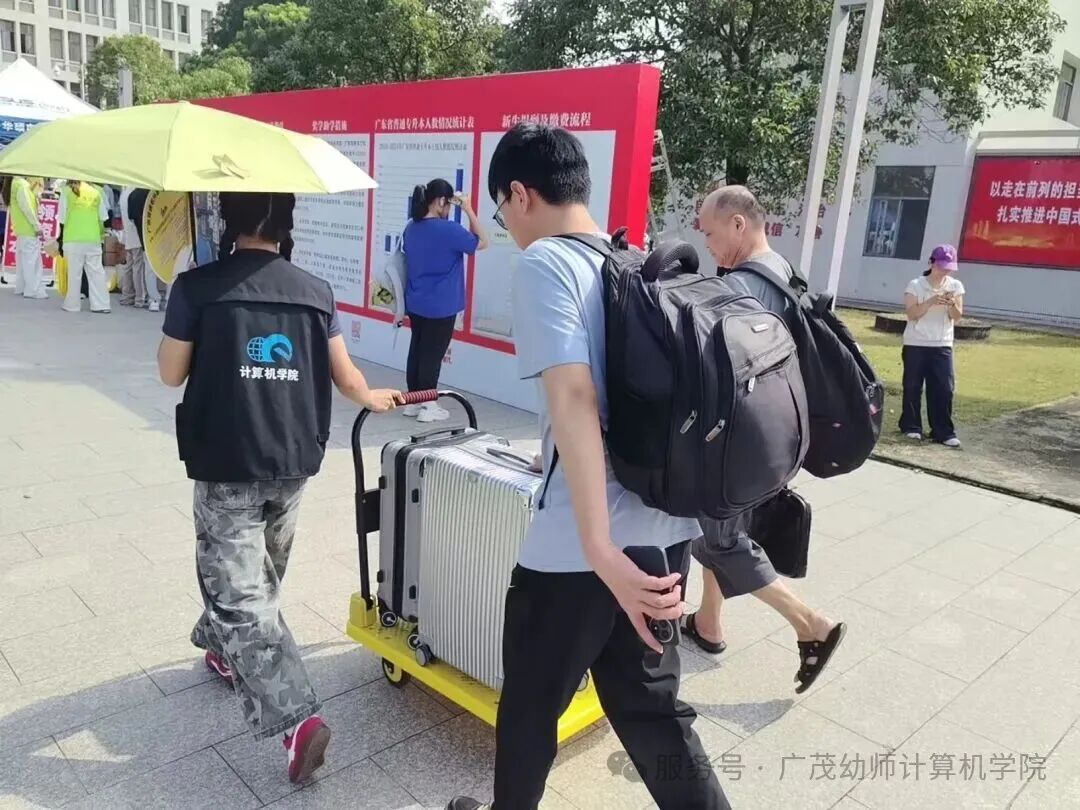 烈日当头,热忱依旧。志愿者化身“导航员”,搬行李、指路线,用笑容服务让新生暖如归家;“同学这边来”“同学需要帮助随时叫我”,是计算机学院最燃的迎新“代码”。
