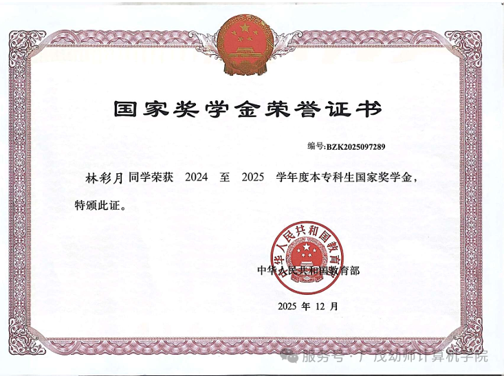 2025-2026学年荣获“学校一等奖学金”